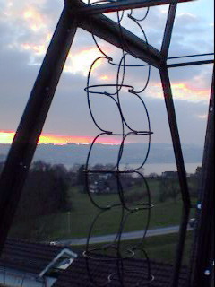 22, 2005 Finally all eleven combs are mounted (almost 7 meter of height). Would be nice to have a factory floor with a ceiling height of 10 meters and some overhead trolley, wouldn't it? On the other hand the view over the Lake Zurich is just gorgeous! |