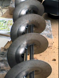22, 2006 7 cardan joints, 3 pairs of bevel gears, 40 bearings and 12 pulleys assembled. The pictures show the drives for the screw conveyor and the big wheel and one of the 3 interactive blocks. |